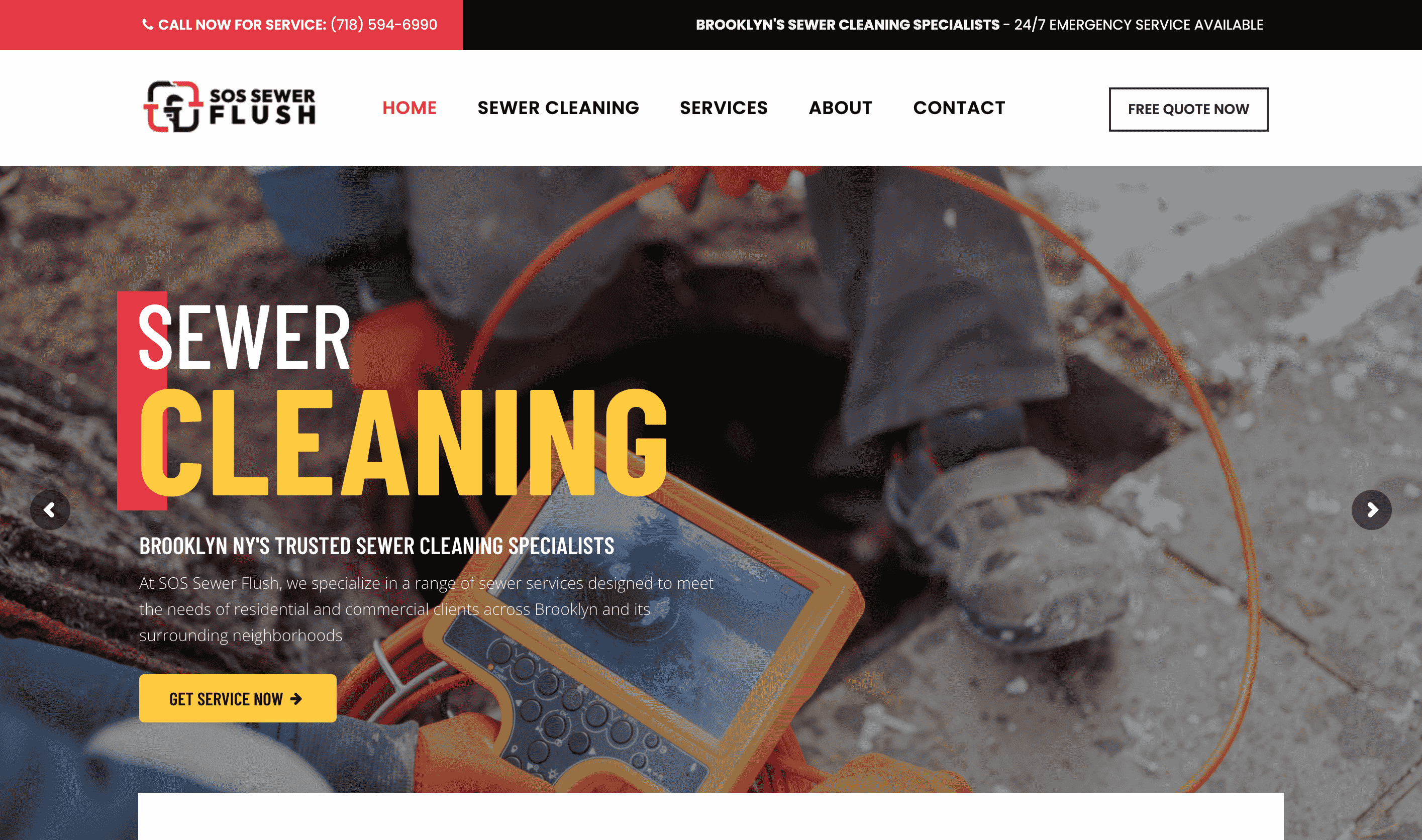 To maximize the website’s visibility, we implemented strategic SEO techniques focusing on essential keywords such as “Brooklyn sewer services,” “plumbing solutions,” and “emergency sewer repair.” These efforts ensure the site ranks highly on search engines, attracting local customers in need of top-notch sewer and plumbing services. Our integrated approach to branding and SEO solidifies SOS Sewer Flush’s online presence and reinforces its reputation as a trusted provider in the Brooklyn area.